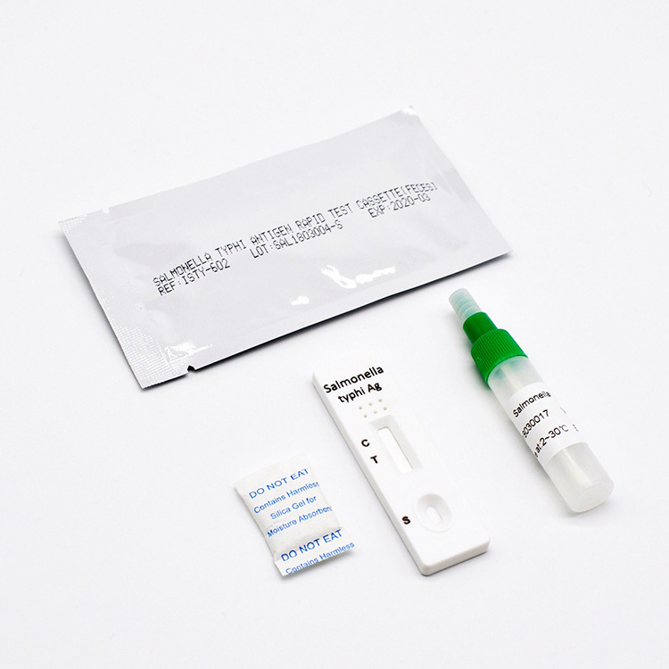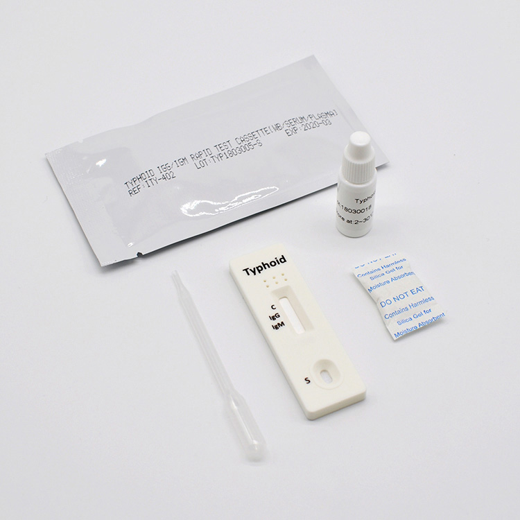 Uso medico Test rapido professionale per tifo igg igm: Salmonella Typhi è un test immunologico visivo rapido per il rilevamento qualitativo presuntivo degli antigeni di Salmonella Typhi e di Salmonella Paratyphi in campioni fecali umani. Questo kit è destinato ad essere utilizzato come ausilio nella diagnosi di S.typhi-S.paratyphi associato a infezione tifoide con un alto grado di sensibilità e specificità.